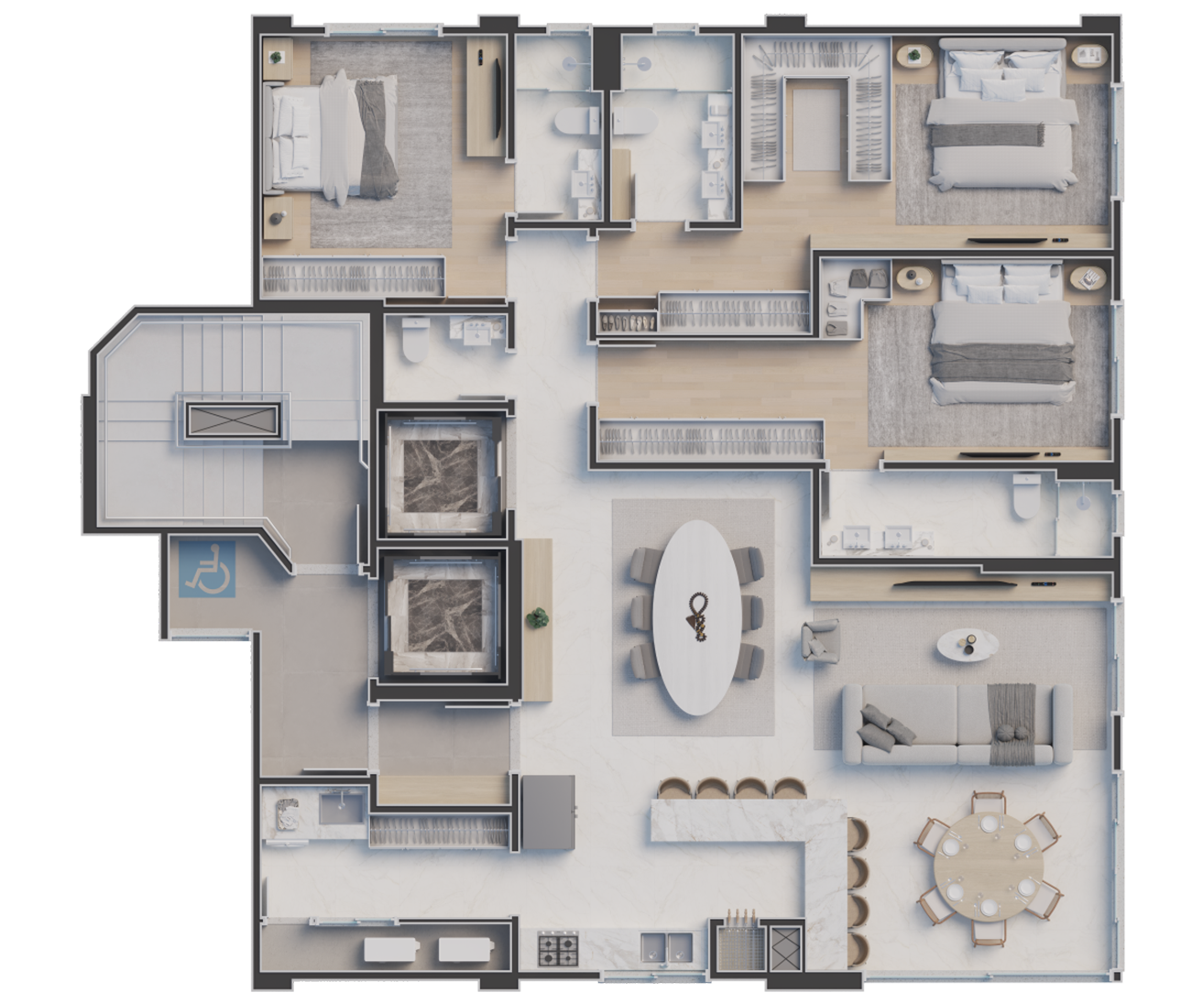 Um andar inteiro dedicado ao seu lazer e bem-estar, com ambientes sofisticados e vista privilegiada para momentos inesquecíveis.